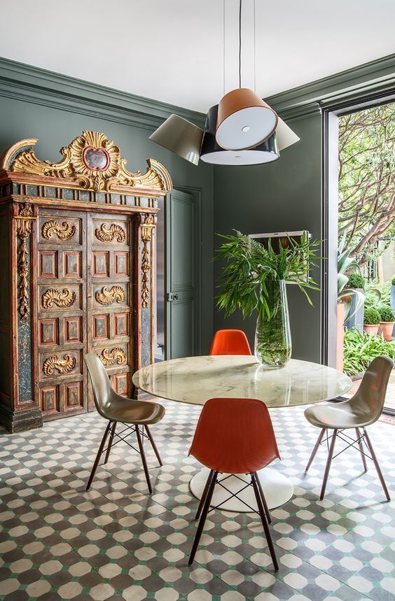 Sans aller dans un travail aussi poussé, on peut choisir de donner de la force au sol de la pièce en choisissant un carrelage à motifs géométriques ou stylisés qui, en se répétant, vont donner un rythme à l'espace.